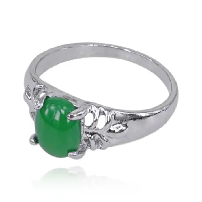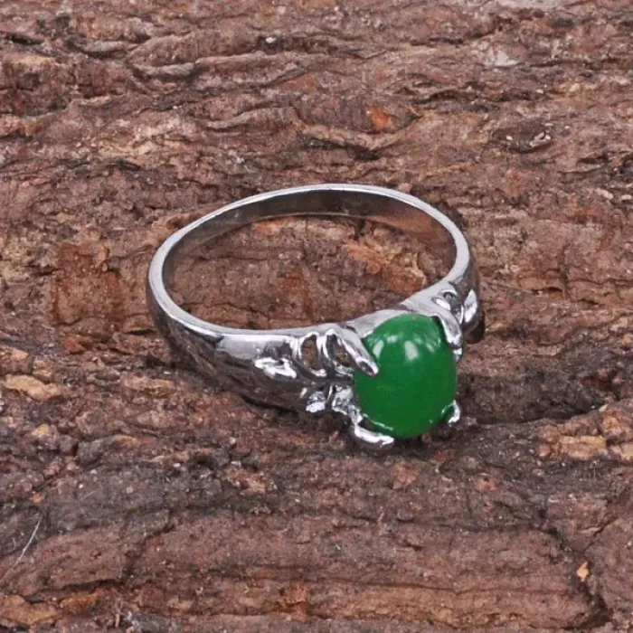 Кольцо с вставкой из натурального нефрита. Изготовлено из бижутерного сплава с покрытием под серебро.