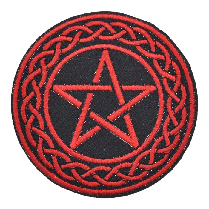 Нашивка для декорирования одежды и текстиля из ткани с машинной вышивкой в виде пентаграммы.