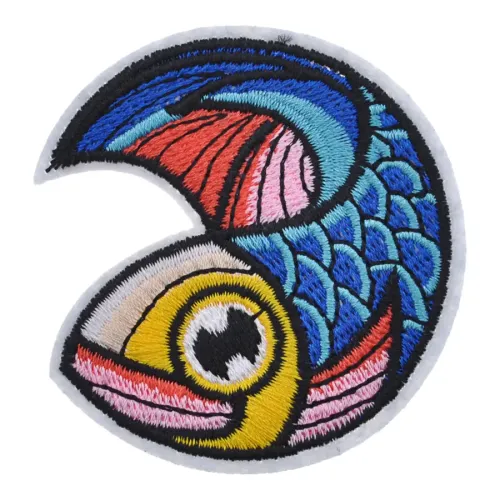 Тканевая нашивка с машинной вышивкой в виде рыбы.