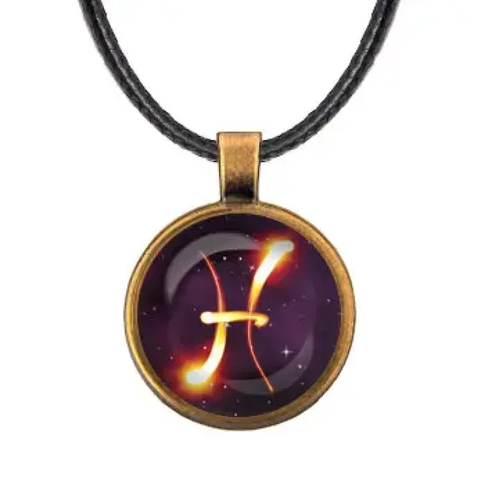 Кулон "Знаки Зодиака - Рыбы" — это стильный аксессуар, который станет отличным подарком для любителей астрологии. Он выполнен из бижутерного сплава с покрытием под бронзу и дополнен стеклянной линзой, защищающей изображение. Диаметр кулона составляет 28 мм, что делает его заметным элементом в любом образе.