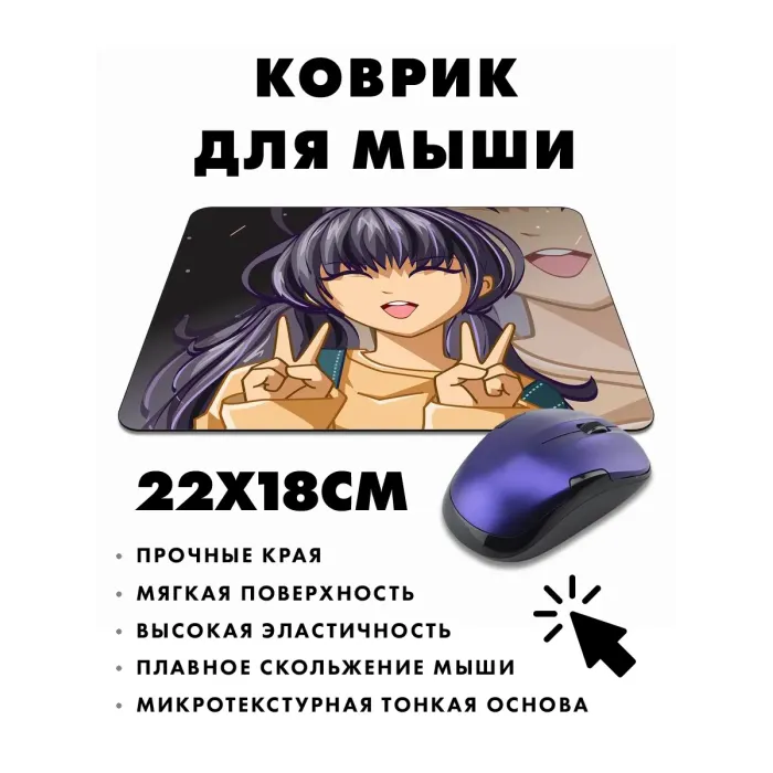 Коврик для мыши с изображением аниме-девушки — это не только практичный аксессуар, но и стильный элемент рабочего пространства. Он выполнен из прорезиненного материала, что обеспечивает надежное сцепление с поверхностью стола и предотвращает скольжение. Размер коврика составляет 22х18 см, а толщина — 3 мм, что делает его удобным в использовании.