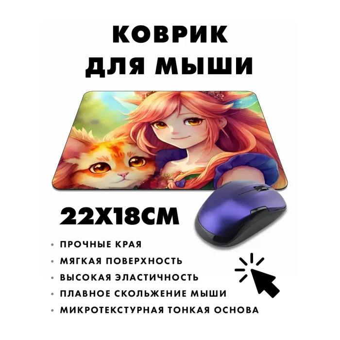 Коврик для мыши с изображением аниме-девушки — это не только стильный аксессуар, но и практичное решение для комфортной работы за компьютером. Прорезиненная основа обеспечивает надежное сцепление с поверхностью, предотвращая скольжение коврика во время использования. Размер 22х18 см и толщина 3 мм делают его идеальным выбором для любого рабочего места.