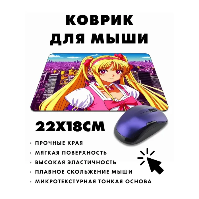 Коврик для компьютерной мыши с изображением аниме девушки станет ярким акцентом рабочего пространства. Прорезиненная основа обеспечивает надежное сцепление с поверхностью, предотвращая скольжение. Размер коврика составляет 22х18 см, а толщина — 3 мм, что гарантирует комфорт при использовании. Изображение отличается стойкостью и четкостью, создавая контрастный эффект. Коврик обеспечивает отличное скольжение мышки, что делает его идеальным выбором как для работы, так и для игр.