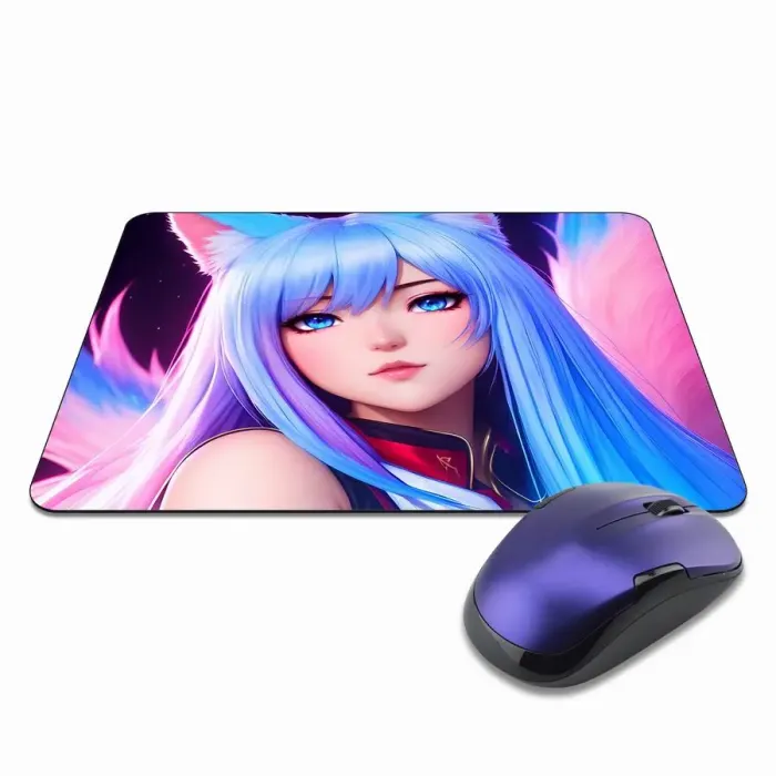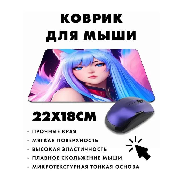 Коврик для мыши с изображением аниме-девушки в стиле неко — это идеальный аксессуар для любителей японской культуры и анимации. Прорезиненная основа обеспечивает надежное сцепление с поверхностью, предотвращая скольжение коврика во время работы или игры.