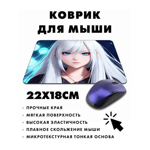 Коврик для мыши с изображением аниме-девушки — это не только практичный аксессуар, но и стильный элемент рабочего пространства. Он выполнен из прорезиненного материала, что обеспечивает отличное сцепление с поверхностью стола. Размер коврика составляет 22х18 см, а толщина — 3 мм, что делает его удобным в использовании.