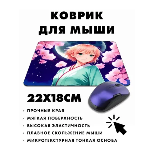 Коврик для мыши с изображением аниме девушки в кимоно — это не только стильный аксессуар, но и практичное решение для комфортной работы за компьютером. Прорезиненная основа обеспечивает надежную фиксацию на поверхности стола, предотвращая скольжение. Размер коврика составляет 22х18 см, а толщина — 3 мм, что делает его удобным в использовании.