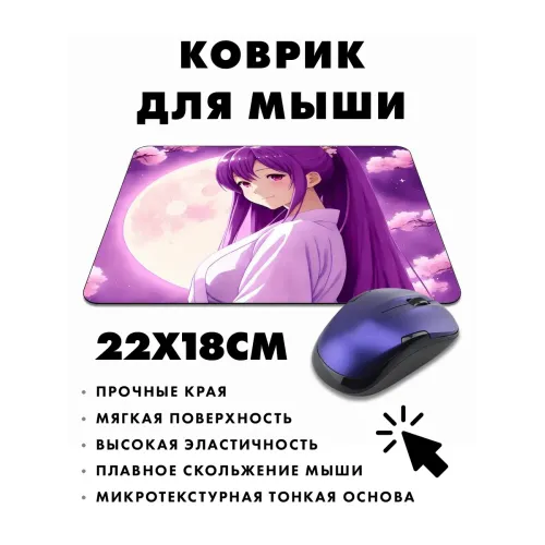 Коврик для мыши с изображением аниме девушки в кимоно — это не только практичный аксессуар, но и стильный элемент декора рабочего места. Прорезиненная основа обеспечивает надежное сцепление с поверхностью, предотвращая скольжение коврика во время работы. Размер 22х18 см и толщина 3 мм делают его удобным для использования на любом столе.