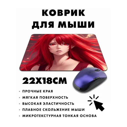 Коврик для мыши с изображением аниме-девушки станет стильным дополнением рабочего места. Прорезиненная основа обеспечивает надежное сцепление с поверхностью, а размер 22х18 см и толщина 3 мм делают его удобным в использовании.