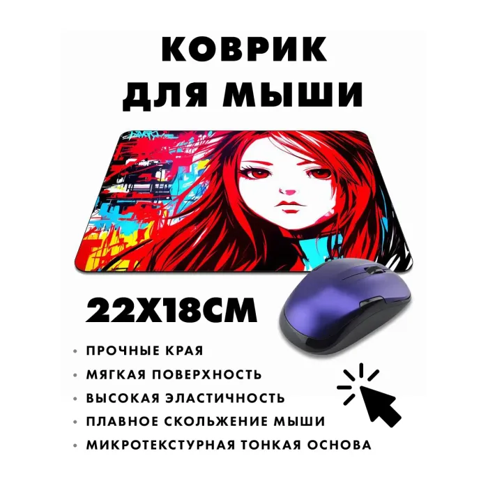 Прорезиненный коврик для компьютерной мышки с ярким изображением аниме-девушки в стиле граффити. Этот аксессуар не только украсит рабочее место, но и создаст атмосферу креативности и вдохновения. Размер коврика составляет 22х18 см, а толщина — 3 мм, что обеспечивает комфортное использование. Изображение отличается стойкостью, четкостью и контрастностью, что делает его привлекательным элементом интерьера. Коврик обеспечивает отличное скольжение мышки, позволяя работать или играть без лишних усилий.
