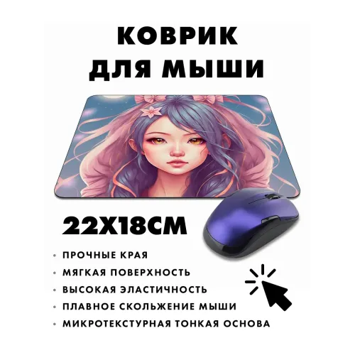 Коврик для мыши с изображением аниме-девушки — это не просто аксессуар, а стильный элемент рабочего пространства. Прорезиненная основа обеспечивает надежное сцепление с поверхностью, предотвращая скольжение коврика во время работы или игры.