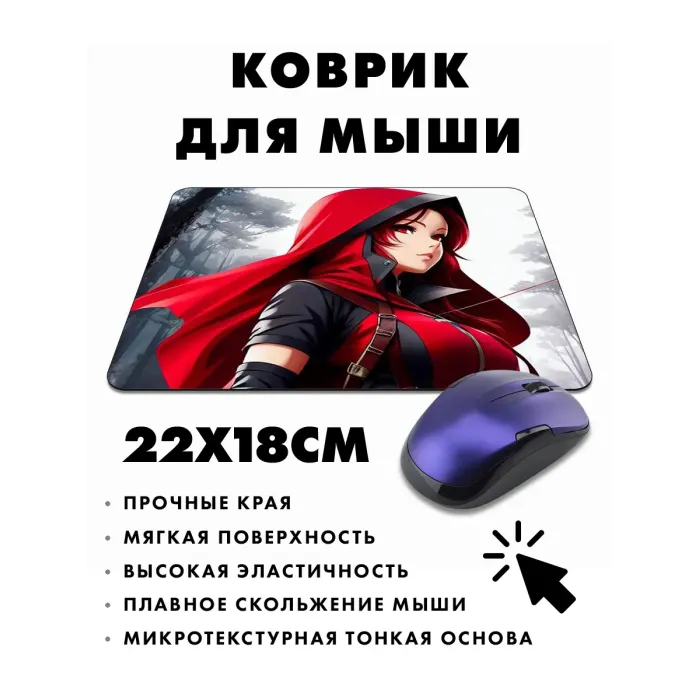 Коврик для мыши с изображением аниме-девушки — это не только практичный аксессуар, но и стильный элемент оформления рабочего пространства. Прорезиненная основа обеспечивает надежное сцепление с поверхностью, предотвращая скольжение коврика во время работы. Размер 22х18 см и толщина 3 мм делают его удобным в использовании. Изображение отличается стойкостью, четкостью и контрастностью, что придаёт яркость каждому движению мыши. Коврик способствует комфортному скольжению мышки, позволяя сосредоточиться на задачах без лишних помех.