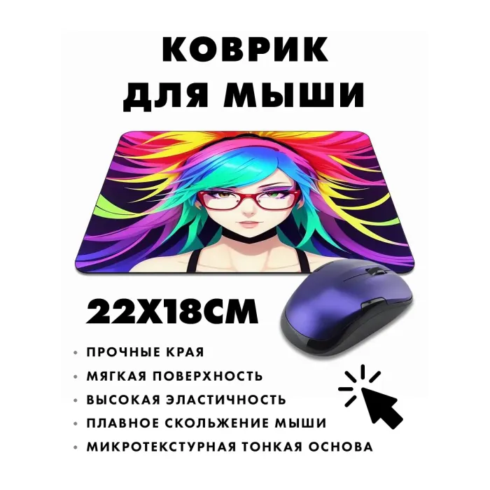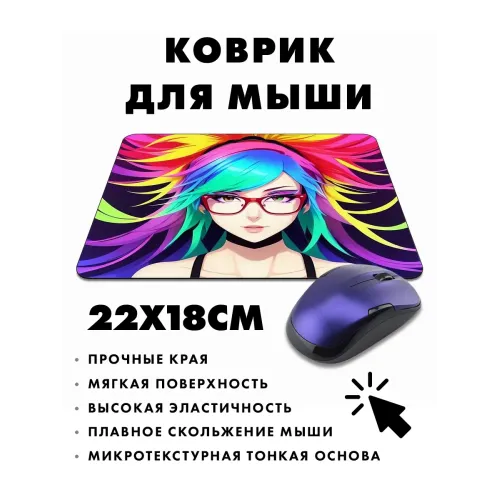 Коврик для мыши с изображением аниме-девушки в очках — это не только стильный аксессуар, но и практичное решение для комфортной работы. Прорезиненная основа обеспечивает надежное сцепление с поверхностью, предотвращая скольжение. Размер коврика составляет 22х18 см, а толщина — 3 мм, что гарантирует отличное скольжение мышки и удобство использования. Изображение отличается стойкостью и четкостью, добавляя яркие акценты на рабочем месте. Такой коврик станет прекрасным дополнением как для геймеров, так и для офисных работников.