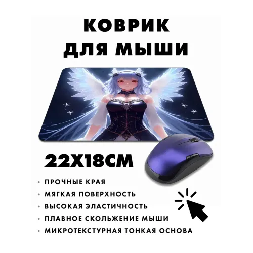 Коврик для мыши с изображением ангела в аниме-стиле — это не только практичный аксессуар, но и стильный элемент рабочего пространства. Прорезиненная основа обеспечивает надежное сцепление с поверхностью, предотвращая скольжение коврика во время работы. Размеры 22х18 см и толщина 3 мм делают его удобным для использования на любом столе.