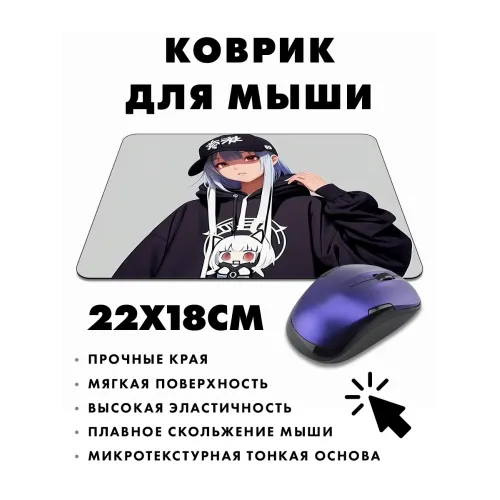 Коврик для мыши с изображением аниме-девушки в худи — это не только стильный аксессуар, но и практичное решение для комфортной работы за компьютером. Прорезиненная основа обеспечивает надежное сцепление с поверхностью, предотвращая скольжение коврика во время использования.