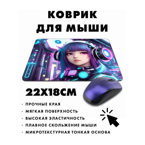 Коврик для мыши с ярким изображением в стиле киберпанк, который добавит индивидуальности любому рабочему пространству. Прорезиненная основа обеспечивает надежное сцепление с поверхностью, предотвращая скольжение. Размеры коврика составляют 22х18 см, а толщина — 3 мм, что гарантирует комфорт при использовании. Стойкое и четкое изображение делает его не только функциональным аксессуаром, но и стильным элементом декора. Хорошее скольжение мышки позволяет работать или играть без лишних усилий.