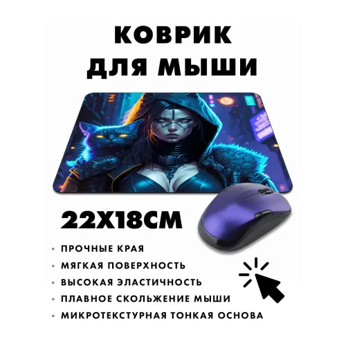 Коврик для мыши с изображением в стиле киберпанк — это не только практичный аксессуар, но и элемент стиля. Он создан для комфортной работы за компьютером и вдохновляет на творчество. Прорезиненная основа обеспечивает надежное сцепление с поверхностью, а толщина в 3 мм гарантирует удобство при использовании.