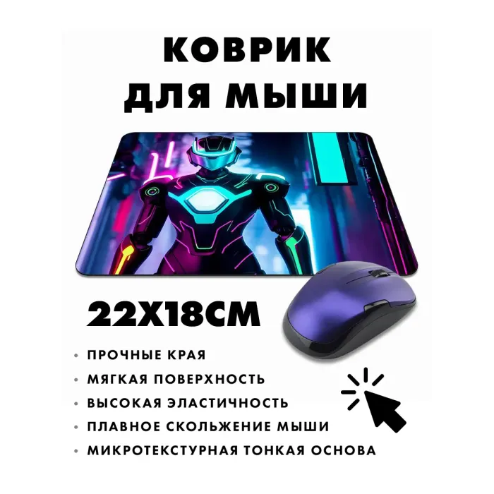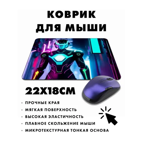 Коврик для мыши с изображением в стиле киберпанк, который станет не только практичным аксессуаром, но и стильным элементом рабочего пространства. Прорезиненная основа обеспечивает надежное сцепление с поверхностью стола, а размер 22х18 см идеально подходит для комфортного использования.