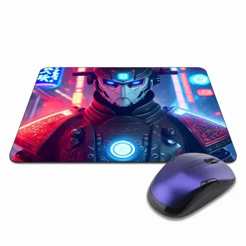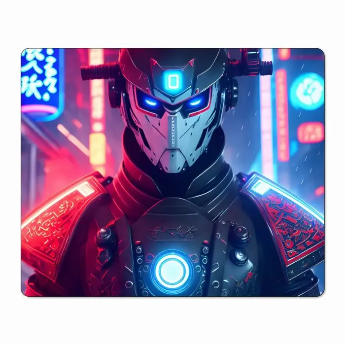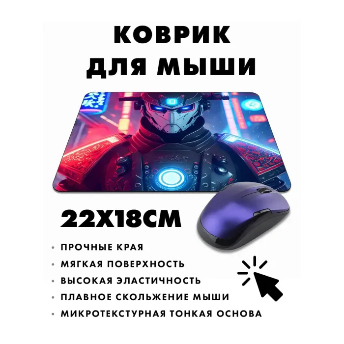 Коврик для мыши в стиле киберпанк с изображением самурая — это не только практичный аксессуар, но и стильный элемент декора рабочего места. Прорезиненная основа обеспечивает надежное сцепление с поверхностью, а размер 22х18 см и толщина 3 мм делают его удобным в использовании.
