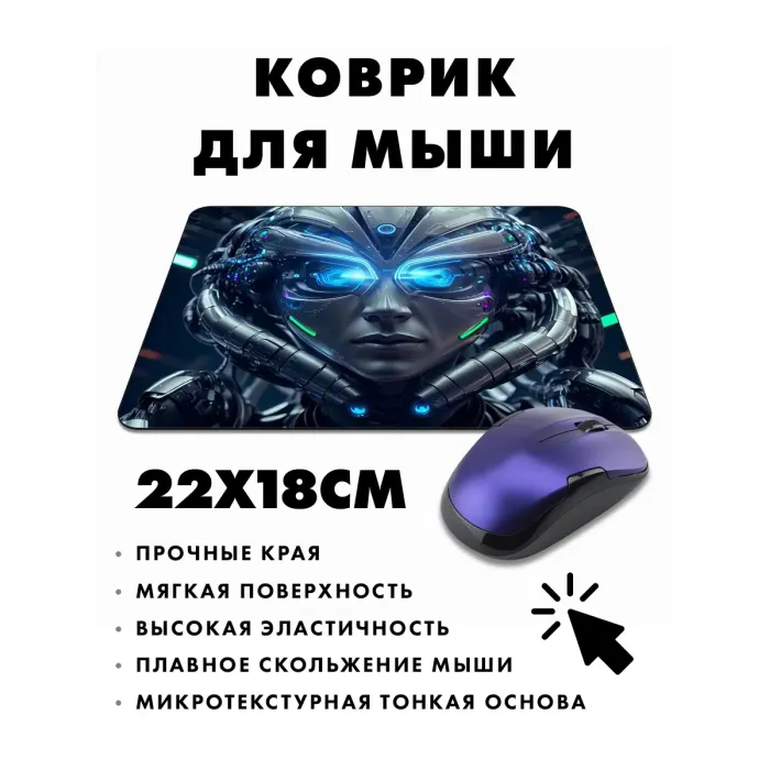 Коврик для мыши с уникальным дизайном в стиле киберпанк, который добавит яркости и индивидуальности рабочему месту. Прорезиненная основа обеспечивает надежное сцепление с поверхностью, а изображение отличается стойкостью и четкостью. Размер коврика составляет 22х18 см при толщине 3 мм, что гарантирует комфортное использование и хорошее скольжение мышки. Этот аксессуар станет не только практичным решением для работы за компьютером, но и стильным элементом декора.