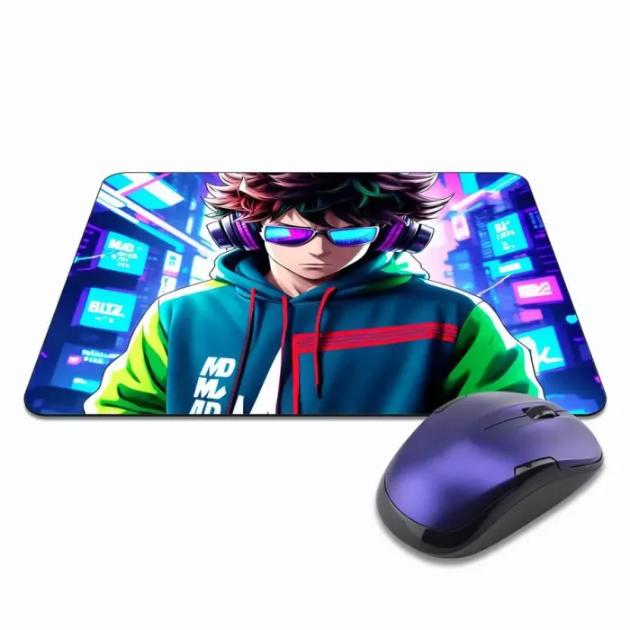 Коврик для мыши с изображением в стиле киберпанк — это не только практичный аксессуар, но и стильный элемент декора рабочего места. Прорезиненная основа обеспечивает надежное сцепление с поверхностью, а размер 22х18 см делает его идеальным для использования на любом столе.