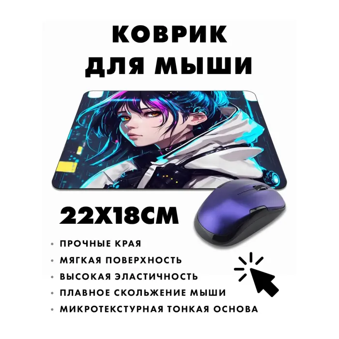 Коврик для мыши с ярким изображением в стиле киберпанк, который не только украсит рабочее пространство, но и обеспечит комфорт во время работы или игр. Прорезиненная основа гарантирует отличное сцепление с поверхностью, а толщина в 3 мм создает дополнительный комфорт при использовании.