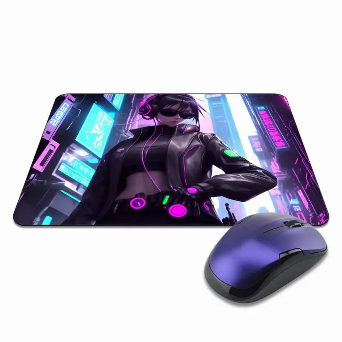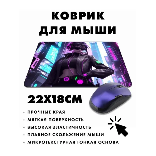 Коврик для мыши с ярким изображением в стиле киберпанк, который не только украсит рабочее место, но и обеспечит комфорт во время работы или игр. Прорезиненная основа гарантирует надежное сцепление с поверхностью, а толщина 3 мм обеспечивает дополнительную мягкость. Размер коврика составляет 22х18 см, что делает его идеальным выбором для любых столов. Изображение отличается стойкостью и четкостью, что позволяет наслаждаться качеством даже при длительном использовании. Коврики подобного типа традиционно ценятся за их способность улучшать скольжение мышки и повышать точность движений.
