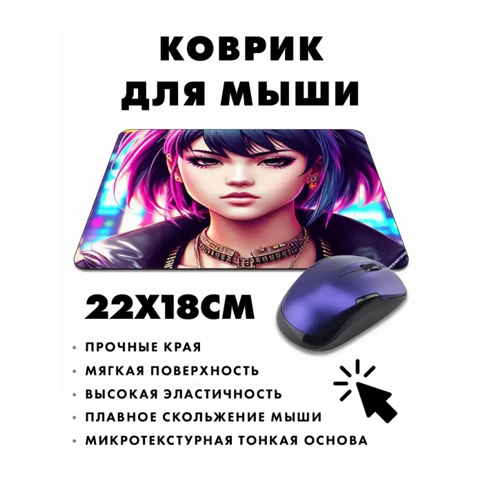 Коврик для мыши в стиле киберпанк — это не просто аксессуар, а настоящее произведение искусства, которое добавит ярких красок в рабочее пространство. Прорезиненная основа обеспечивает надежное сцепление с поверхностью, а изображение девушки выполнено с высокой четкостью и контрастностью.
