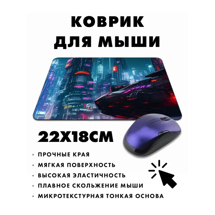 Коврик для мыши с изображением в стиле киберпанк — это не только практичный аксессуар, но и стильный элемент декора рабочего места. Прорезиненная основа обеспечивает надежное сцепление с поверхностью, предотвращая скольжение. Размер коврика составляет 22х18 см, а толщина — 3 мм, что гарантирует комфорт во время работы или игры.