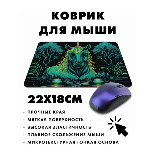 Коврик для мыши с изображением единорога — это не просто аксессуар, а элемент, который добавляет яркие краски в рабочее пространство. Прорезиненный материал обеспечивает надежное сцепление с поверхностью стола, предотвращая скольжение коврика во время работы. Размеры 22х18 см и толщина 3 мм делают его удобным для использования как в офисе, так и дома.