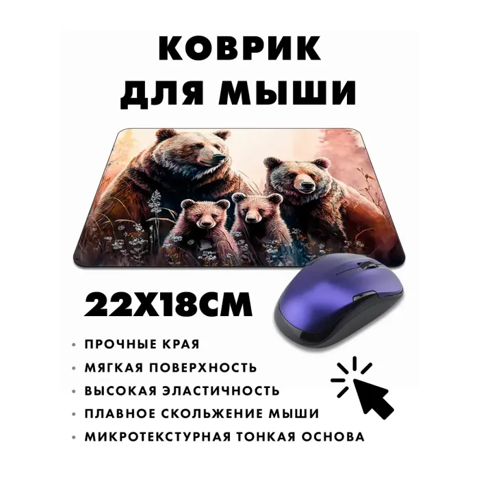 Коврик для мыши с изображением медведей — это не только практичный аксессуар, но и стильное дополнение рабочего места. Прорезиненная основа обеспечивает надежное сцепление с поверхностью, предотвращая скольжение. Основные особенности: