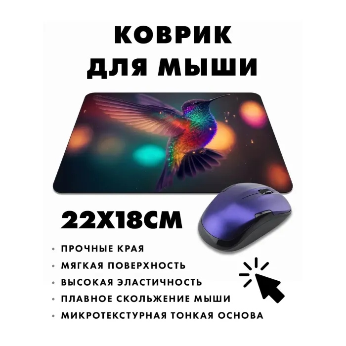 Коврик для мыши с изображением колибри — это не только стильный аксессуар, но и практичное решение для комфортной работы за компьютером. Прорезиненная основа обеспечивает отличное сцепление с поверхностью, предотвращая скольжение коврика во время использования.