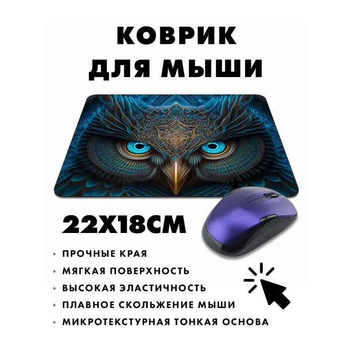 Коврик для мыши с изображением совы — это не только практичный аксессуар, но и стильный элемент рабочего пространства. Изготовленный из качественных материалов, он обеспечивает отличное скольжение мышки и комфорт во время работы или игры.