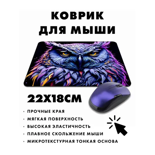 Коврик для мыши с изображением совы — это не просто аксессуар, а стильный элемент рабочего пространства. Он сочетает в себе функциональность и эстетическую привлекательность. Прорезиненная основа обеспечивает надежное сцепление с поверхностью, предотвращая скольжение.