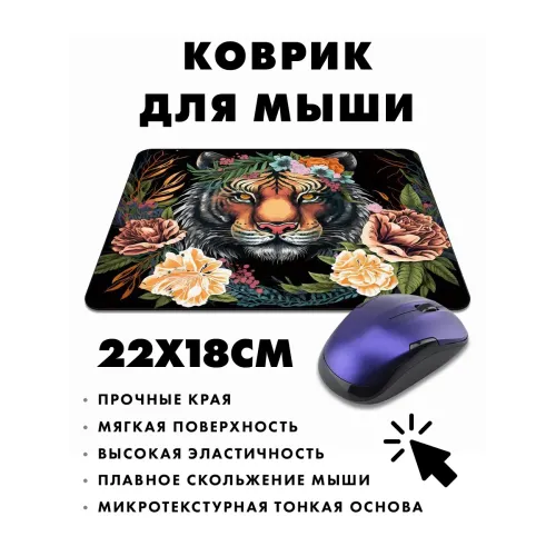 Коврик для мыши с изображением тигра — это не только практичный аксессуар, но и стильный элемент рабочего пространства. Он выполнен из прорезиненного материала, что обеспечивает отличное сцепление с поверхностью стола и предотвращает скольжение.