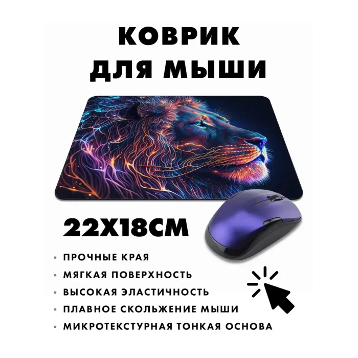 Коврик для мыши с изображением льва — это не только практичный аксессуар, но и стильный элемент рабочего пространства. Он выполнен из прорезиненного материала, что обеспечивает отличное сцепление с поверхностью стола и предотвращает скольжение.