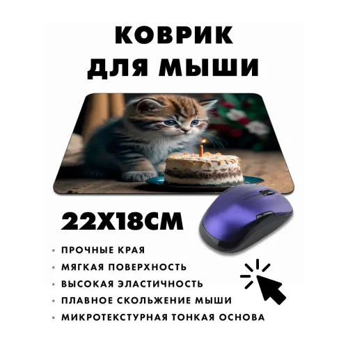 Коврик для мыши с изображением котенка — это не просто аксессуар, а стильное дополнение рабочего пространства. Он станет отличным подарком на день рождения и подчеркнет индивидуальность пользователя. Прорезиненная основа обеспечивает надежную фиксацию на столе, а размер 22х18 см идеально подходит для комфортного использования.