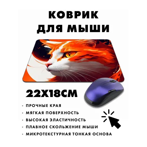 Коврик для мыши — это не просто аксессуар, а элемент комфорта и стиля рабочего места. Прорезиненная основа обеспечивает надежное сцепление с поверхностью, а изображение кота добавляет яркости и индивидуальности. Размер коврика составляет 22х18 см, толщина — 3 мм, что гарантирует отличное скольжение мышки и комфорт при использовании. Изображение отличается стойкостью, четкостью и контрастностью, что делает его привлекательным дополнением к любому интерьеру. Такой коврик станет отличным подарком или украшением рабочего стола.