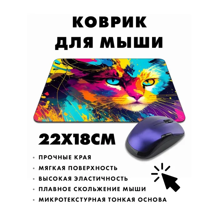 Коврик для мыши с изображением кота — это не просто аксессуар, а стильный элемент рабочего пространства. Прорезиненная основа обеспечивает отличное сцепление с поверхностью стола, что предотвращает скольжение коврика во время работы. Размер 22х18 см и толщина 3 мм делают его удобным в использовании. Изображение на коврике отличается стойкостью и четкостью, добавляя яркие акценты в повседневную рутину. Хорошее скольжение мышки гарантирует комфорт при работе или игре.