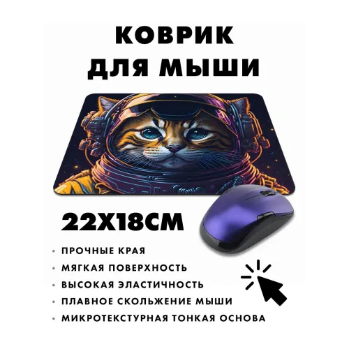 Коврик для мыши с изображением кота в скафандре — это не только практичный аксессуар, но и яркий элемент декора рабочего места. Он добавляет оригинальности и поднимает настроение во время работы за компьютером.