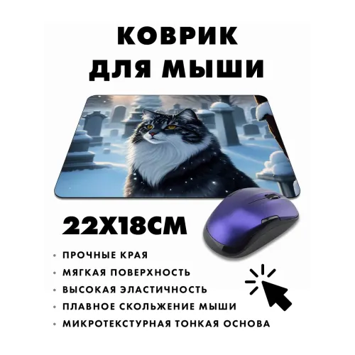 Коврик для мыши с изображением, который добавит оригинальности в рабочее пространство. Прорезиненная основа обеспечивает надежное сцепление с поверхностью стола, а размер 22х18 см и толщина 3 мм делают его удобным в использовании.