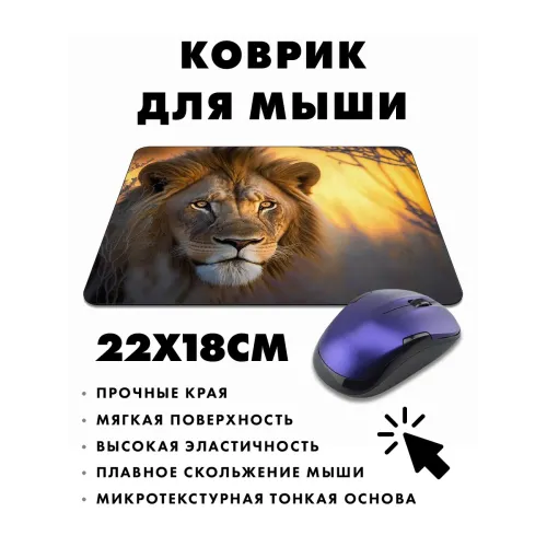 Коврик для мыши с изображением льва — это не только практичный аксессуар, но и стильный элемент рабочего пространства. Прорезиненная основа обеспечивает надежное сцепление с поверхностью, а размеры 22х18 см и толщина 3 мм делают его удобным в использовании.