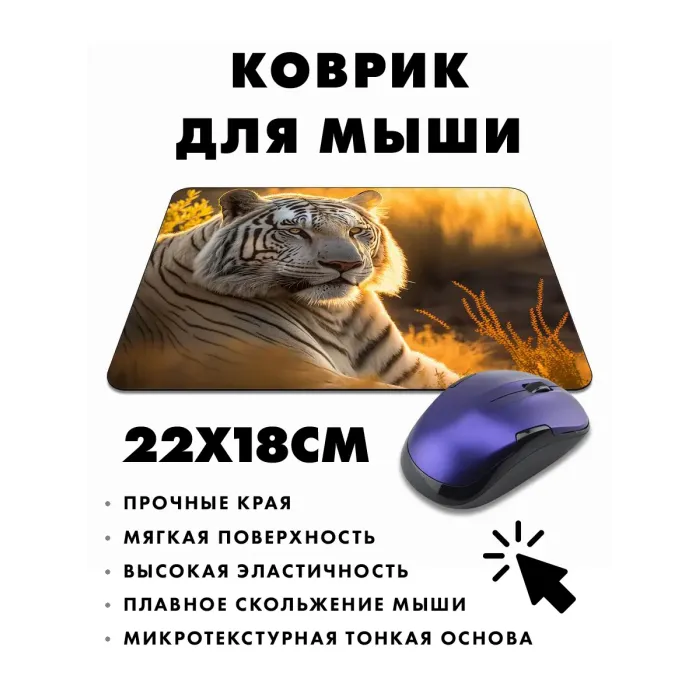Коврик для мыши с изображением белого тигра — это не только функциональный аксессуар, но и стильный элемент рабочего пространства. Он создан из прорезиненного материала, который обеспечивает отличное сцепление с поверхностью стола и предотвращает скольжение.