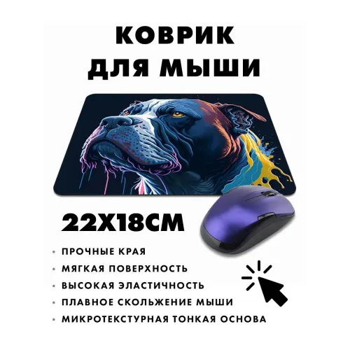Коврик для мыши с изображением собаки питбуля — это не просто аксессуар, а стильный элемент рабочего пространства. Он выполнен из прорезиненного материала, что обеспечивает отличное сцепление с поверхностью стола и предотвращает скольжение.
