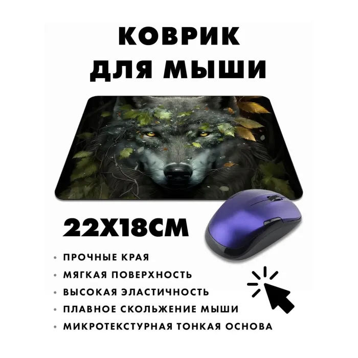 Коврик для мыши с изображением волка — это не только практичный аксессуар, но и стильный элемент рабочего пространства. Прорезиненная основа обеспечивает надежное сцепление с поверхностью, а размер 22х18 см и толщина 3 мм делают его удобным в использовании.