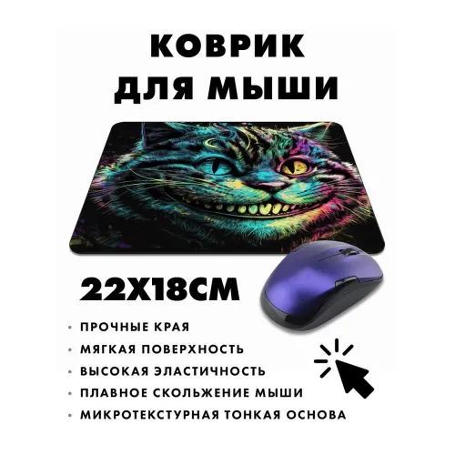Коврик для мыши с изображением Чеширского кота — это не только практичный аксессуар, но и стильный элемент рабочего пространства. Он выполнен из прорезиненного материала, обеспечивающего отличное сцепление с поверхностью стола и комфорт при использовании.