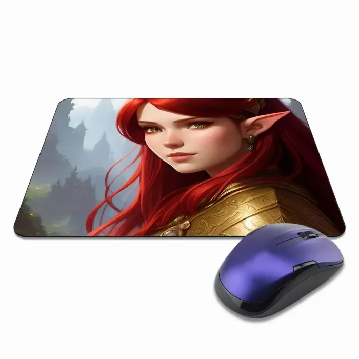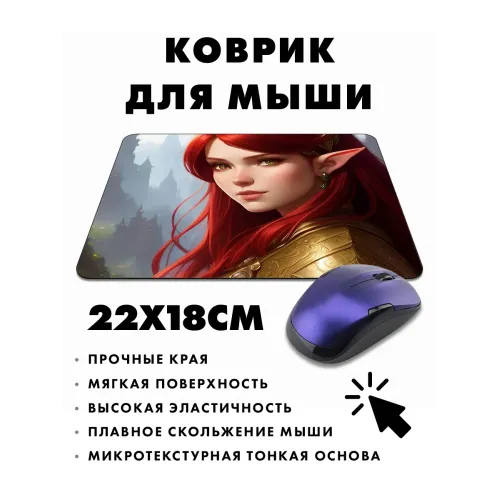 Коврик для мыши с изображением девушки-эльфа станет не только практичным аксессуаром, но и ярким элементом декора рабочего пространства. Прорезиненная основа обеспечивает надежное сцепление с поверхностью, а размер 22х18 см и толщина 3 мм делают его удобным в использовании.