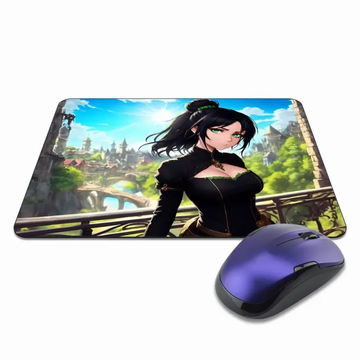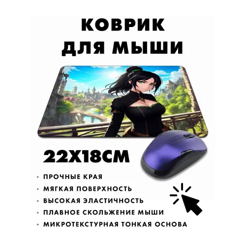 Коврик для мыши с изображением аниме девушки в фэнтезийном стиле — это не просто аксессуар, а элемент, который добавляет индивидуальности рабочему месту. Прорезиненная основа обеспечивает надежное сцепление с поверхностью, а размер 22х18 см и толщина 3 мм делают его удобным в использовании.