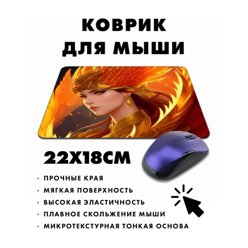 Коврик для мыши с изображением «Девушка феникс» — это стильный и практичный аксессуар, который украсит любое рабочее место. Прорезиненная основа обеспечивает надежное сцепление с поверхностью, а размер 22х18 см и толщина 3 мм делают его удобным в использовании.