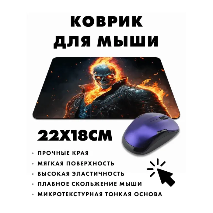 Коврик для мыши с изображением Призрачного гонщика — это стильный и практичный аксессуар для любого компьютера. Он не только украсит рабочее место, но и обеспечит комфорт при использовании мыши благодаря своим характеристикам.