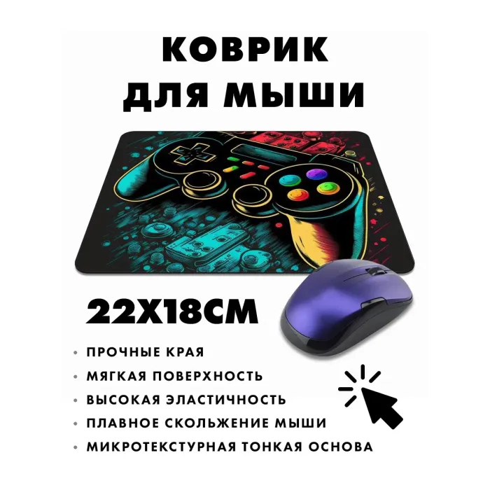 Коврик для мыши с изображением геймпада. Материал: ткань с прорезиненной основой.